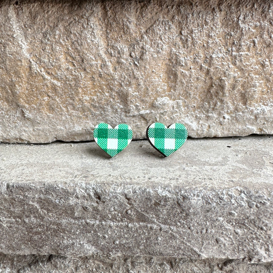 White & Green Plaid Heart Earrings | St. Patrick’s Day Earrings