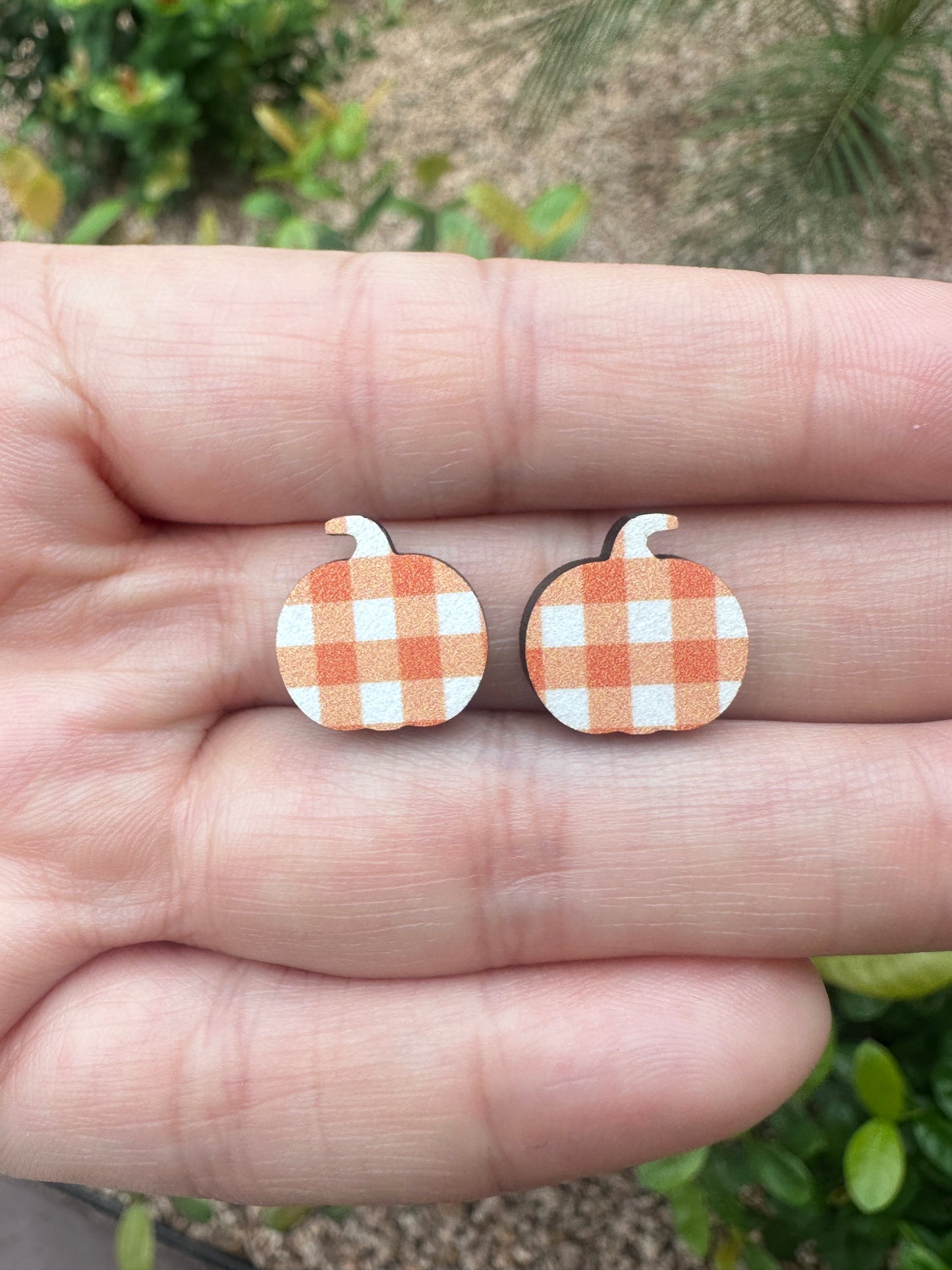 Pumpkin Plaid Stud Earrings | Fall | Thanksgiving Earrings