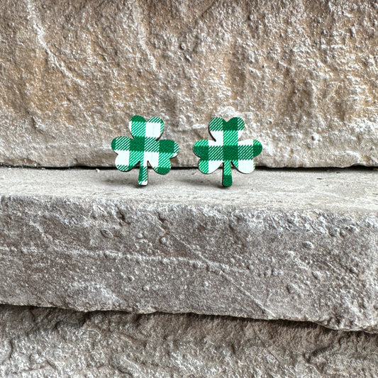 White & Green Plaid Shamrock Earrings | St. Patrick’s Day Earrings