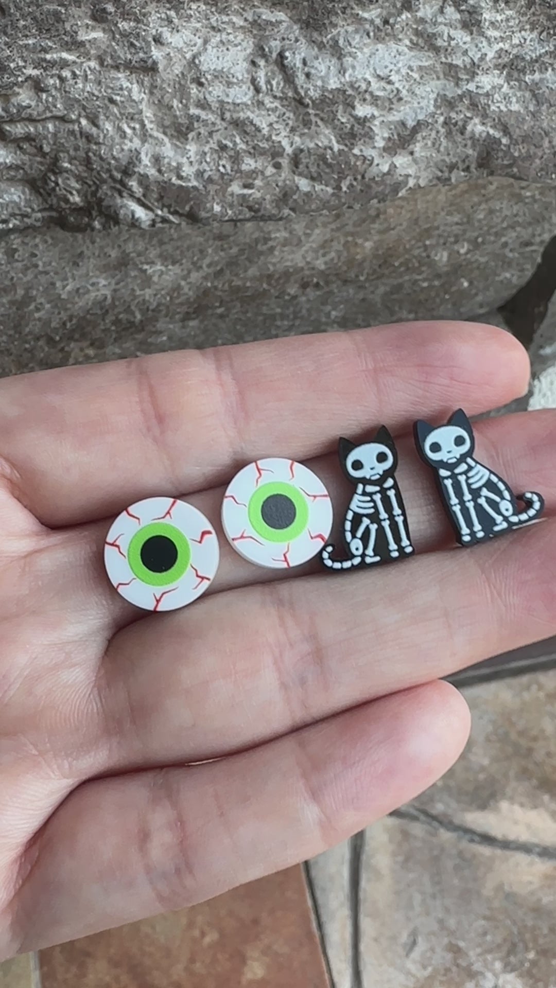 - are laser cut out of 1/8th white acrylic with eye design printed with directly on acrylic with high quality ink, embossed effect