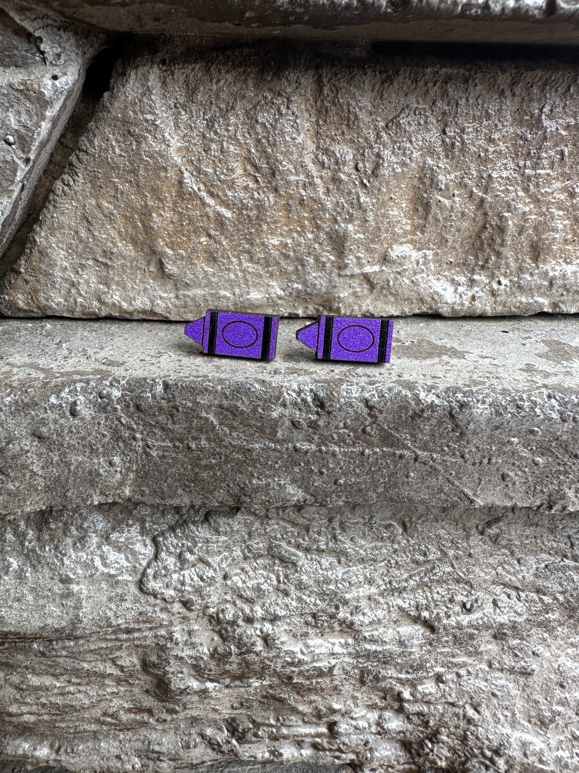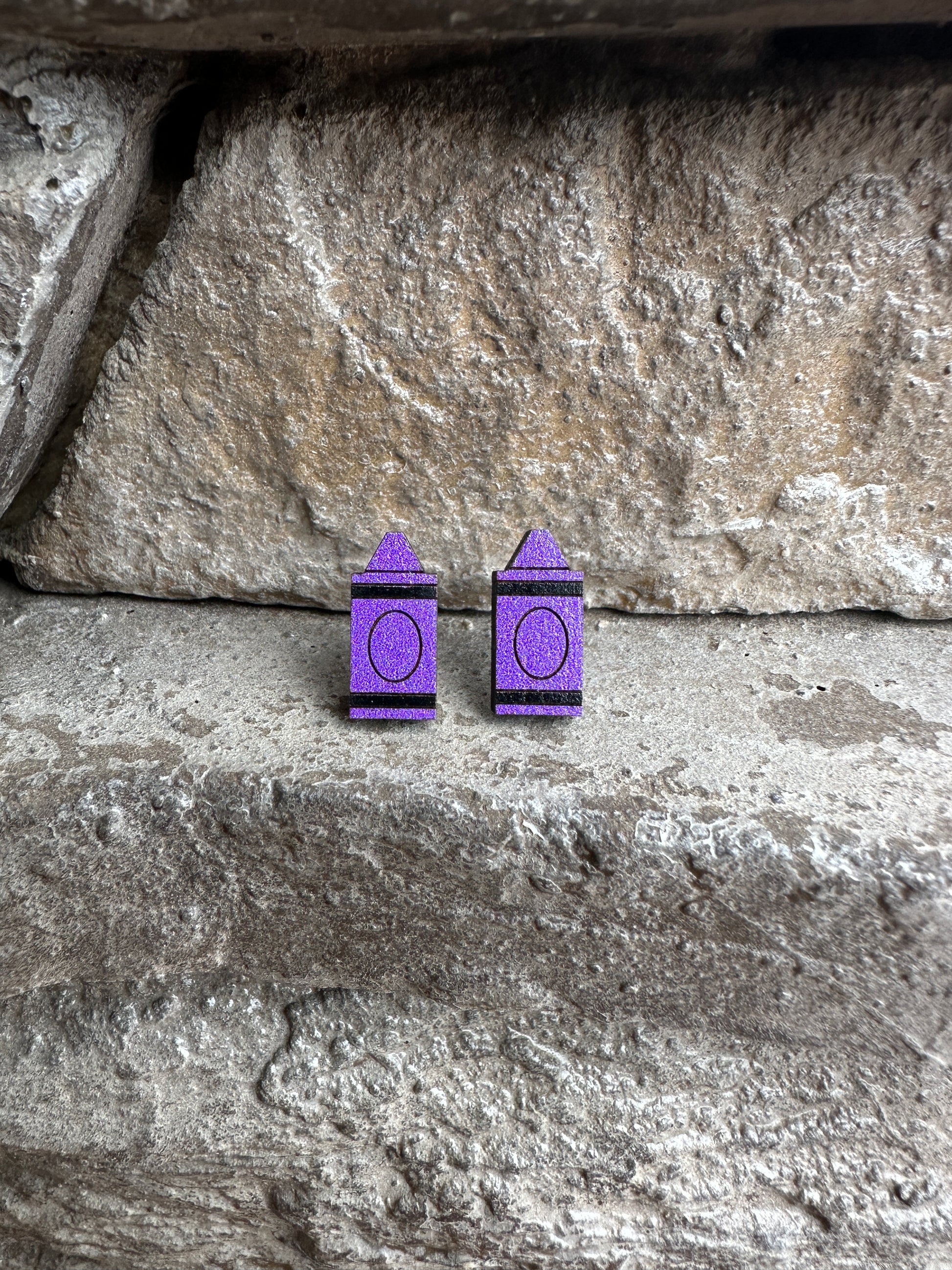 Purple Crayon Wood Earrings