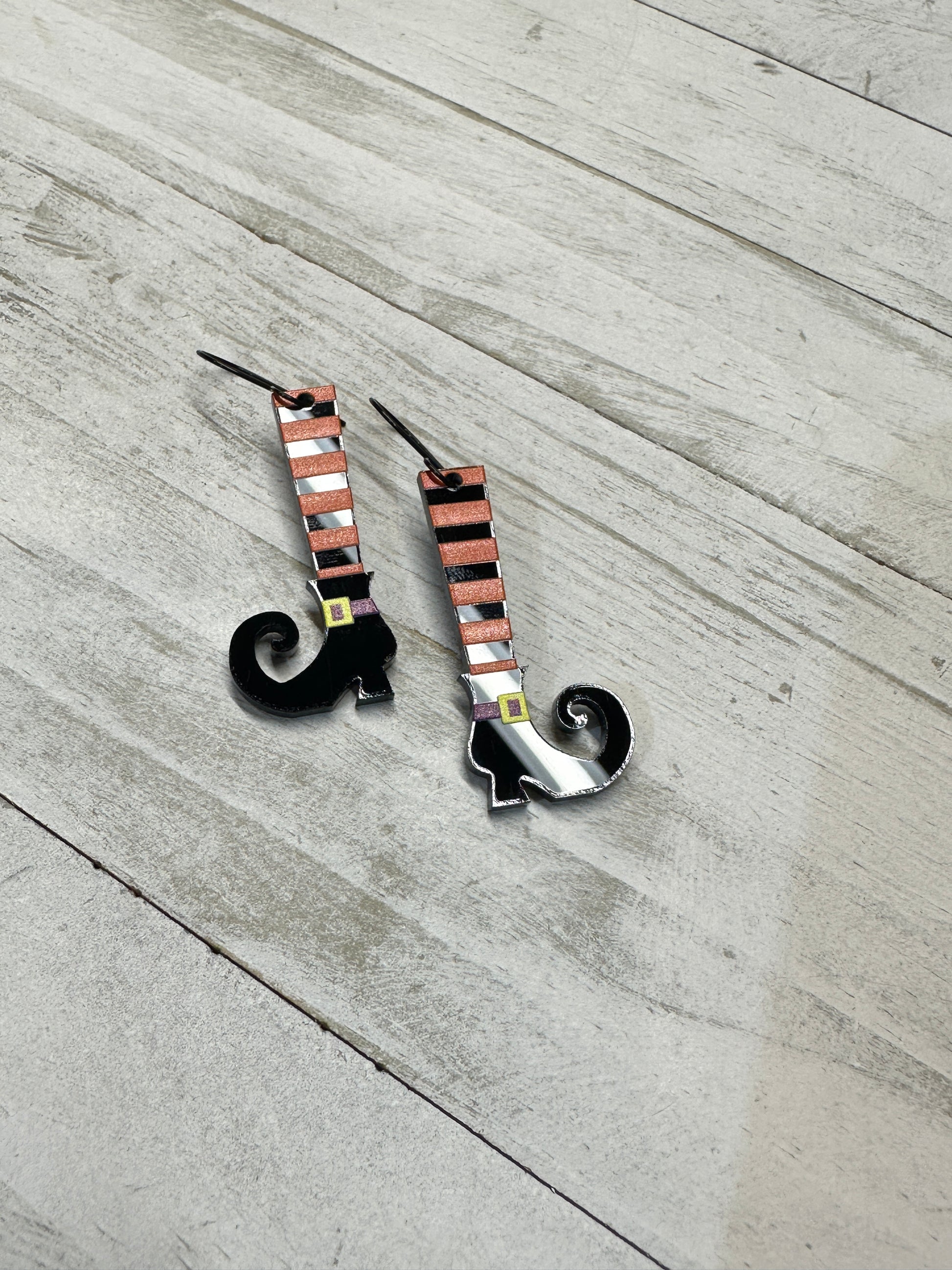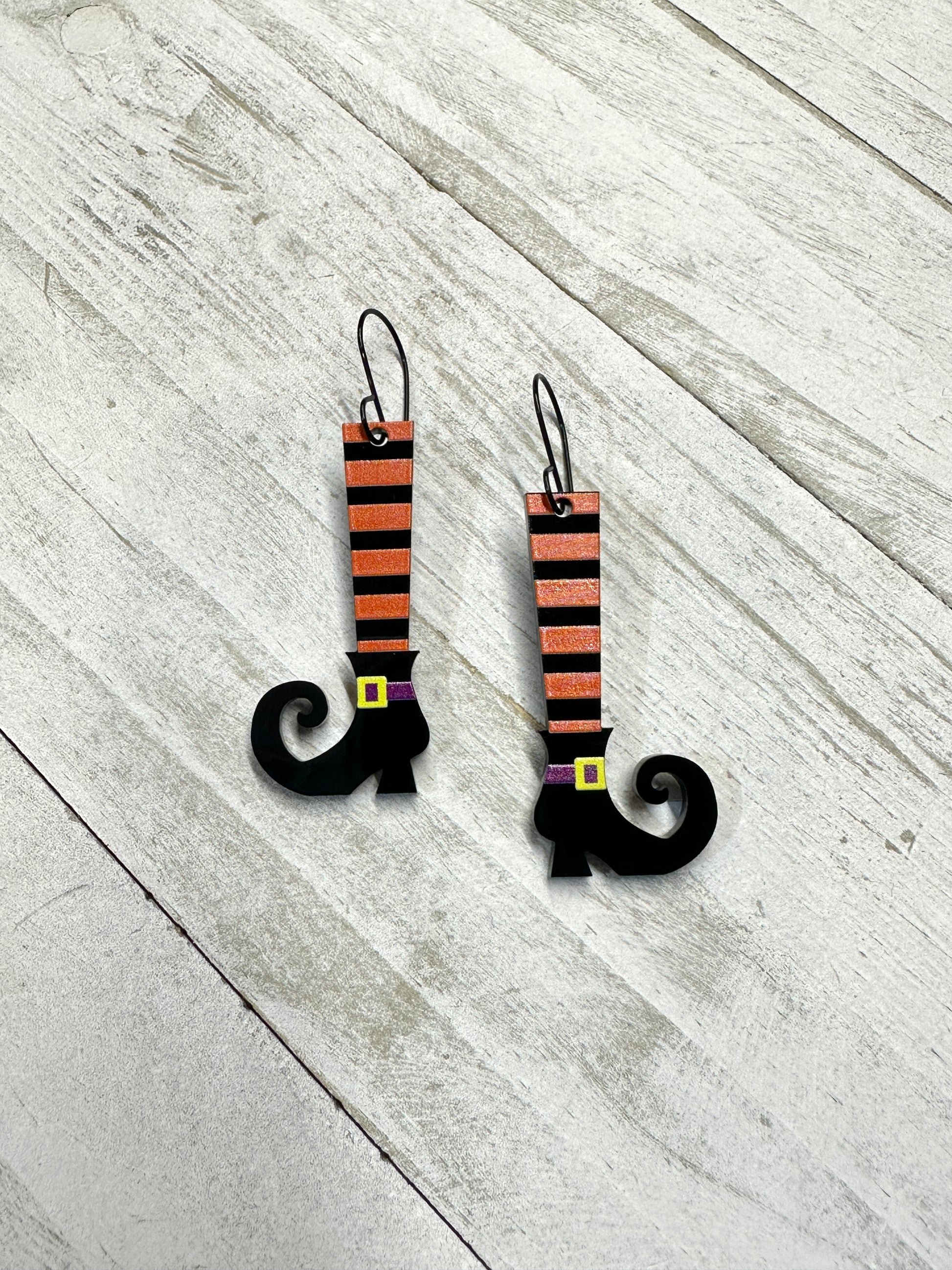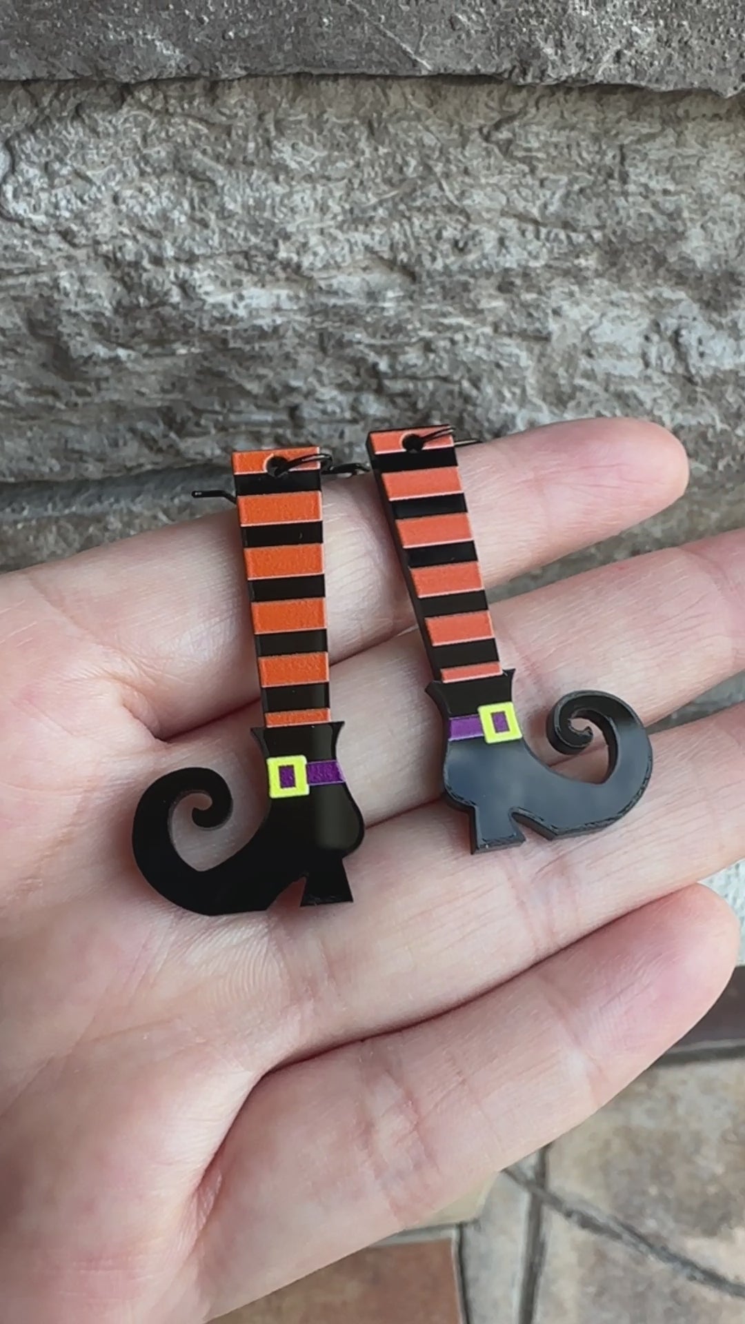 - are laser cut out of 1/8th black acrylic with witch legs design printed directly on acrylic with high quality ink